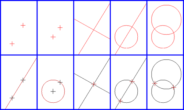 - Creating the one or two points in the intersection of two circles (if they intersect).