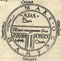 Through the Roman period and the Middle Ages, a few writers took the Isthmus of Suez as the boundary between Asia and Africa, but most writers continued to take it to be the Nile or the western border of Egypt (Gibbon). In the Middle Ages the world was portrayed on T and O maps, with the T representing the waters dividing the three continents. By the middle of the eighteenth century, "the fashion of dividing Asia and Africa at the Nile, or at the Great Catabathmus [the boundary between Egypt and Libya] farther west, had even then scarcely passed away".