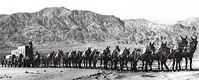 The ores that are most famously associated with the area were also the easiest to collect and the most profitable: evaporite deposits such as salts, borate, and talc. Borax was found by Rosie and Aaron Winters near Furnace Creek Ranch (then called Greenland) in 1881. Later that same year, the Eagle Borax Works became Death Valley's first commercial borax operation. William Tell Coleman built the Harmony Borax Works plant and began to process ore in late 1883 or early 1884, continuing until 1888. This mining and smelting company produced borax to make soap and for industrial uses. The end product was shipped out of the valley 165 miles (266 km) to the Mojave railhead in 10-ton-capacity wagons pulled by " twenty-mule teams" that were actually teams of 18 mules and two horses each. The teams averaged two miles (3 km) an hour and required about 30 days to complete a round trip. The trade name 20-Mule Team Borax was established by Francis Marion Smith's Pacific Coast Borax Company after Smith acquired Coleman's borax holdings in 1890. A memorable advertising campaign used the wagon's image to promote the Boraxo brand of granular hand soap and the Death Valley Days radio and television programs. Mining continued after the collapse of Coleman's empire, and by the late 1920s the area was the world's number one source of borax. Some four to six million years old, the Furnace Creek Formation is the primary source of borate minerals gathered from Death Valley's playas.
