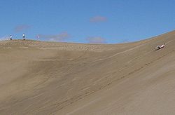 The hot, dry climate makes it difficult for soil to form. Mass wasting, the down-slope movement of loose rock, is therefore the dominant erosive force in mountainous area, resulting in "skeletonized" ranges (mountains with very little soil on them). Sand dunes in the park, while famous, are not nearly as numerous as their fame or the dryness of the area may suggest. One of the main dune fields is near Stovepipe Wells in the north-central part of the valley and is primarily made of quartz sand. Another dune field is just 10 miles (16 km) to the north but is instead mostly composed of travertine sand. Yet another dune field is near the seldom-visited Ibex Hill in the southernmost part of the park, just south of the Saratoga Springs marshland. Prevailing winds in the winter come from the north, and prevailing winds in the summer come from the south. Thus the overall position of the dune fields remains more or less fixed.