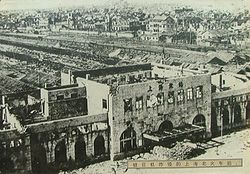 ![]() West side of the Sihang Warehouse, riddled with bullet and artillery holes after the battle  |