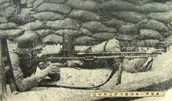 The regiment was assigned used equipment from the front-line troops of the 88th, and was well equipped considering the shoddy equipment that most Chinese forces had. Photos and records show that soldiers were each issued a rifle, likely a Gewehr 98 or Karabiner 98k, 300 rounds of 8 mm Mauser, two crates of grenades, a German-made M1935 helmet, a gas mask, and food pouch. There was a total of 27 light machine guns, mostly Czech ZB vz.26, approximately one for each squad. The four water-cooled Type 24 Maxim guns were the only heavy weapons available to the battalion—a mortar platoon assigned to them was never mentioned by participants of the battle, and was therefore unlikely to have joined the battle.