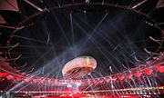 The 2010 Commonwealth Games was the largest sports event held in India. Shown here is the Opening Ceremony at the Jawaharlal Nehru Stadium, the third largest stadium in India.