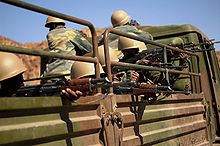 Djiboutian Army soldiers scanning the terrain during Operation Able Dart 08-01 on Forward Operating in Ali Sabieh.