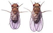 Drosophila melanogaster (from the Greek for black-bellied dew-lover) is a two-winged insect that belongs to the Diptera, the order of the flies. The species is commonly known as the common fruit fly, and is one of the most commonly used model organisms in biology, including studies in genetics, physiology and life history evolution. Flies belonging to the Tephritidae are also called fruit flies, which can lead to confusion, especially in Australia where the term fruit fly is used to refer to the Tephritidae, an economic pest in fruit production.