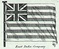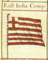 The English East India Company flag changed over time. From the period of 1600 to the 1707 Acts of Union between England and Scotland the flag consisted of a St George's cross in the canton and a number of alternating Red and White stripes. After 1707 the canton contained the original Union Flag consisting of a combined St George's cross and a St Andrew's cross. After the Acts of Union 1800 that joined Ireland with Great Britain to form the United Kingdom, the canton of the East India Company's flag was altered accordingly to include the new Union Flag with the additional Saint Patrick's Flag. There has been much debate and discussion regarding the number of stripes on the flag and the order of the stripes. Historical documents and paintings show many variations from 9 to 13 stripes, with some images showing the top stripe being red and others showing the top stripe being white.