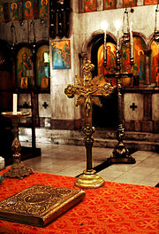 There is also a book of the four Gospels on the altar table. The Orthodox read specific verses of this Gospel on each different day.