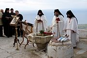 Epiphany Mass in the Monastery of Prophet Elias of Santorini in Greece