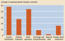 Along these lines, Andrew Berg and Jonathan D. Ostry (2011) examined the question of what sustains long periods of strong growth, and found that one of the most robust and important determinants is the level of income inequality. In particular, they found that high 'growth spells' were much more likely to end in countries with less equal income distribution, and that the measured effect was large. For example, they estimate that closing half the inequality gap between Latin America and emerging Asia would more than double the expected duration of a 'growth spell.' Their findings were robust to the inclusion of other variables in the model, and to alternate definitions of growth spells. According to their study, which has featured prominently in the financial press, inequality is of course not the only thing that matters but it clearly belongs in the "pantheon" of well-established growth factors such as the quality of political institutions or trade openness.