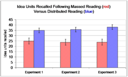 The spaced learning effect, a cognitive phenomenon strongly supported by psychological research, has broad applicability within education. For example, students have been found to perform better on a test of knowledge about a text passage when a second reading of the passage is delayed rather than immediate (see figure). Educational psychology research has confirmed the applicability to education of other findings from cognitive psychology, such as the benefits of using mnemonics for immediate and delayed retention of information.