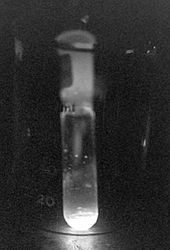 Glow due to the intense radiation from ~300 µg of 253Es.