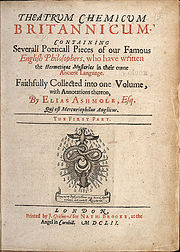 Theatrum Chemicum Britannicum (1652), Ashmole's annotated compilation of alchemical poems in English.
