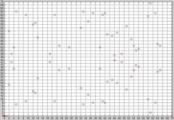 Set of affine points of elliptic curve y2 = x3 − x over finite field \scriptstyle \mathbf{F}_{71}.