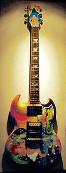 Early during his stint in Cream, Clapton's first Les Paul Standard was stolen. He continued to play Les Pauls exclusively with Cream (one bought from Andy Summers was almost identical to the stolen guitar) until 1967, when he acquired his most famous guitar in this period, a 1964 Gibson SG. Just before Cream's first U.S. appearance in 1967, Clapton's SG, Bruce's Fender VI, and Baker's drum head were all repainted in psychedelic designs created by the visual art collective known as The Fool. In 1968 Clapton bought a Gibson Firebird and started using the 1964 Cherry-Red Gibson ES-335 again. The aforementioned 1964 ES-335 had a storied career. Clapton used it at the last Cream show in November 1968 as well as with Blind Faith, played it sparingly for slide pieces in the 1970s, used it on "Hard Times" from Journeyman, the Hyde Park live concert of 1996, and the From the Cradle sessions and tour of 1994–95. It was sold for US$847,500 at a 2004 auction. Gibson produced a limited run of 250 "Crossroads 335" replicas. The 335 was only the second electric guitar Clapton bought.