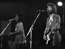 In 1974, Clapton was partnered with Pattie Boyd (they would not actually marry until 1979) and no longer using heroin (although starting to drink heavily). He assembled a low-key touring band that included Radle, Beeka, Miami guitarist George Terry, keyboardist Dick Sims (who died in 2011 ), drummer Jamie Oldaker, and vocalists Yvonne Elliman and Marcy Levy (also known as Marcella Detroit). With this band Clapton recorded 461 Ocean Boulevard (1974), an album with an emphasis on more compact songs and fewer guitar solos; the cover version of " I Shot The Sheriff" was Clapton's first No. 1 hit and was important in bringing reggae and the music of Bob Marley to a wider audience. The 1975 album There's One in Every Crowd continued this trend. The album's original title, The World's Greatest Guitar Player (There's One In Every Crowd), was changed before pressing, as it was felt its ironic intention would be misunderstood. The band toured the world and subsequently released the 1975 live LP, E.C. Was Here. Clapton continued to release albums and toured regularly. Highlights of the period include No Reason to Cry (a collaboration with Bob Dylan and The Band); Slowhand, which featured " Wonderful Tonight" (another song inspired by Boyd); and a second J.J. Cale cover, " Cocaine". In 1976 he performed, alongside a string of notable guests, to pay tribute to the farewell performance of The Band, filmed in a Martin Scorsese documentary called The Last Waltz.