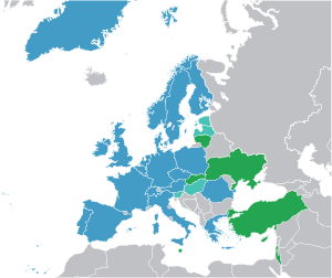 - ^ a b c d e f g Acceded members became ESA member states upon signing an accession agreement.