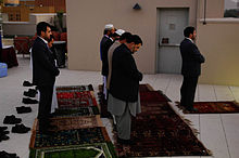 Salat (ṣalāh) is the Islamic prayer. Salat consists of five daily prayers according to the Sunna; the names are according to the prayer times: Fajr (dawn), Dhuhr (noon), Asr (afternoon), Maghrib (evening), and Isha' (night). The Fajr prayer is performed before sunrise, Dhuhr is performed in the midday after the sun has surpassed its highest point, Asr is the evening prayer before sunset, Maghrib is the evening prayer after sunset and Isha is the night prayer. All of these prayers are recited while facing the Kaaba in Mecca. Muslims must wash themselves before prayer, this washing is called wudu ("purification"). The prayer is accompanied by a series of set positions including; bowing with hands on knees, standing, prostrating and sitting in a special position (not on the heels, nor on the buttocks).