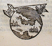 The widely circulated woodcut of a man poking his head through the firmament of a flat Earth to view the mechanics of the spheres, executed in the style of the 16th century cannot be traced to an earlier source than Camille Flammarion's L'Atmosphère: Météorologie Populaire (Paris, 1888, p. 163). The woodcut illustrates the statement in the text that a medieval missionary claimed that "he reached the horizon where the Earth and the heavens met", an anecdote that may be traced back to Voltaire, but not to any known medieval source. In its original form, the woodcut included a decorative border that places it in the 19th century; in later publications, some claiming that the woodcut dated from the 16th century, the border was removed. According to anecdotal evidence Flammarion had commissioned the woodcut himself; certainly no source of the image earlier than Flammarion's book is known.