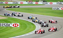 Cars wind through the infield section of the Indianapolis Motor Speedway at the 2003 United States Grand Prix.