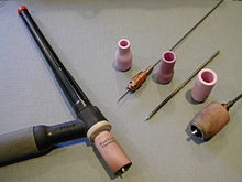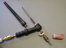 Gas tungsten arc welding (GTAW), also known as tungsten inert gas (TIG) welding, is an arc welding process that uses a non-consumable tungsten electrode to produce the weld. The weld area is protected from atmospheric contamination by an inert shielding gas (argon or helium), and a filler metal is normally used, though some welds, known as autogenous welds, do not require it. A constant-current welding power supply produces energy which is conducted across the arc through a column of highly ionized gas and metal vapors known as a plasma.