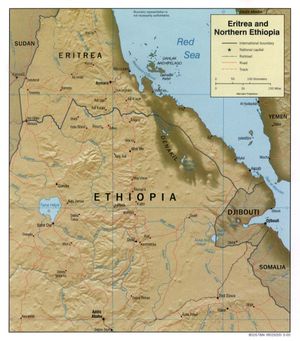Location: Eastern Africa, bordering the Red Sea, between Djibouti and Sudan, also bordering on Ethiopia.