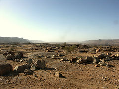 Approximately three-fourths of Mauritania is desert or semidesert. As a result of extended, severe drought, the desert has been expanding since the mid-1960s. The plateaus gradually descend toward the northeast to the barren El Djouf, or "Empty Quarter," a vast region of large sand dunes that merges into the Sahara desert. To the west, between the ocean and the plateaus, are alternating areas of clayey plains (regs) and sand dunes (ergs), some of which shift from place to place, gradually moved by high winds. The dunes generally increase in size and mobility toward the north.