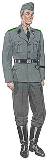 Unlike the rest of the SS, the right-side collar patch of the RSHA was plain black without insignia, as was the uniform cuffband. Gestapo agents in uniform did not wear SS shoulderboards, but rather police-pattern shoulderboards piped or underlaid in "poison green" (giftgrün). A diamond-shaped black patch with "SD" in white was worn on the lower left sleeve even by SiPo men who were not actually in the SD. Sometimes this Raute was piped in white; there is some debate over whether this may or may not have indicated Gestapo personnel.