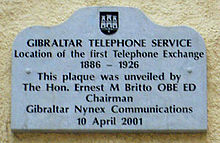 A plaque in City Mill Lane marking the site of Gibraltar's first telephone exchange.