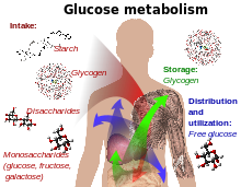 -Glucose-containing compounds and isomeric forms are digested and taken up by the body in the intestines, including starch, glycogen, disaccharides and monosaccharides.