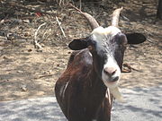 The domestic goat (Capra aegagrus hircus) is a subspecies of goat domesticated from the wild goat of southwest Asia and Eastern Europe. The goat is a member of the Bovidae family and is closely related to the sheep as both are in the goat-antelope subfamily Caprinae. There are over three hundred distinct breeds of goat.