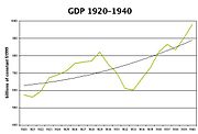 Chart 1: USA GDP annual pattern and long-term trend, 1920-40, in billions of constant dollars