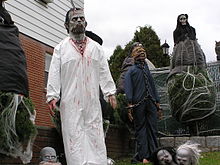 Halloween imagery includes themes of death, evil, the occult, and mythical monsters. Black, orange, and sometimes purple are Halloween's traditional colors.