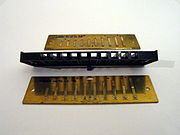 The basic parts of the harmonica are the comb, reed-plates and cover-plates.