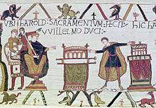 Harold Godwinson, or Harold II; Old English: Harold Godƿinson (c. 1022 – 14 October 1066) was the last Anglo-Saxon King of England. Harold reigned from 6 January 1066 until his death at the Battle of Hastings on 14 October of that same year, fighting the Norman invaders led by William the Conqueror during the Norman conquest of England. Harold is the first of only three kings of England to have died in warfare; the other two were Richard I and Richard III.