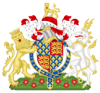 Before his father's death in 1399, Henry bore the arms of the kingdom, differenced by a label of five points ermine. After his father's death, the difference changed to a label of five points per pale ermine and France. Upon his accession as king, Henry updated the arms of the kingdom to match an update in those of royal France – from a field of fleur-de-lys to just three.
