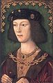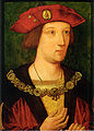 | Portrait of King Henry VII holding a Tudor Rose, wearing collar of the Order of the Golden Fleece, dated 1505, by unknown artist, National Portrait Gallery, London (NPG 416). | |