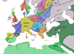 Charlemagne's reign marked the beginning of a new Germanic Roman Empire in the west, the Holy Roman Empire. Outside his borders, new forces were gathering. The Kievan Rus' were marking out their territory, a Great Moravia was growing, while the Angles and the Saxons were securing their borders.