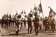 The Greek Civil War (Greek: Eμφύλιος πόλεμος Emfilios polemos), was fought between 1944 and 1949 in Greece between the Governmental forces of Greece supported by the United Kingdom at first, and later by the USA, and the Democratic Army of Greece; the military branch of the Greek communist party. According to some analysts, it represented the first example of a post-war West interference in the political situation of a foreign country. The victory of the British—and later US-supported government forces led to Greece's membership in NATO and helped to define the ideological balance of power in the Aegean for the entire Cold War.