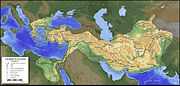 In 1526, Babur, a Timurid ( Turco-Persian) descendant of Timur and Genghis Khan, swept across the Khyber Pass and established the Mughal Empire, which lasted for over 200 years. The Mughal Dynasty ruled most of the Indian subcontinent by 1600; it went into a slow decline after 1707 and was finally defeated during the 1857 war of independence also called the Indian rebellion of 1857. This period marked vast social change in the subcontinent as the Hindu majority were ruled over by the Mughal emperors, some of whom showed religious tolerance, liberally patronising Hindu culture, and some of whom destroyed historical temples and imposed taxes on non-Muslims. During the decline of the Mughal Empire, which at its peak occupied an area slightly larger than the ancient Maurya Empire, several smaller empires rose to fill the power vacuum or themselves were contributing factors to the decline. The Mughals were perhaps the richest single dynasty to have ever existed. In 1739, Nader Shah defeated the Mughal army at the huge Battle of Karnal. After this victory, Nader captured and sacked Delhi, carrying away many treasures, including the Peacock Throne.