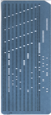 In the late 1880s, the American Herman Hollerith invented data storage on a medium that could then be read by a machine. Prior uses of machine readable media had been for control ( automatons such as piano rolls or looms), not data. "After some initial trials with paper tape, he settled on punched cards..." Hollerith came to use punched cards after observing how railroad conductors encoded personal characteristics of each passenger with punches on their tickets. To process these punched cards he invented the tabulator, and the key punch machine. These three inventions were the foundation of the modern information processing industry. His machines used mechanical relays (and solenoids) to increment mechanical counters. Hollerith's method was used in the 1890 United States Census and the completed results were "... finished months ahead of schedule and far under budget". Indeed, the census was processed years faster than the prior census had been. Hollerith's company eventually became the core of IBM. IBM developed punch card technology into a powerful tool for business data-processing and produced an extensive line of unit record equipment. By 1950, the IBM card had become ubiquitous in industry and government. The warning printed on most cards intended for circulation as documents (checks, for example), "Do not fold, spindle or mutilate," became a catch phrase for the post-World War II era.