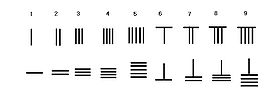 Of particular note is the use in Chinese mathematics of a decimal positional notation system, the so-called "rod numerals" in which distinct ciphers were used for numbers between 1 and 10, and additional ciphers for powers of ten. Thus, the number 123 would be written using the symbol for "1", followed by the symbol for "100", then the symbol for "2" followed by the symbol for "10", followed by the symbol for "3". This was the most advanced number system in the world at the time, apparently in use several centuries before the common era and well before the development of the Indian numeral system. Rod numerals allowed the representation of numbers as large as desired and allowed calculations to be carried out on the suan pan, or Chinese abacus. The date of the invention of the suan pan is not certain, but the earliest written mention dates from AD 190, in Xu Yue's Supplementary Notes on the Art of Figures.