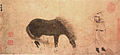 The establishment of classical Chinese landscape painting is accredited largely to the Eastern Jin Dynasty artist Gu Kaizhi (344 - 406 AD), one of the most famous artists of Chinese history. Like the elongated scroll scenes of Kaizhi, Tang Dynasty (618 - 907 AD) Chinese artists like Wu Daozi painted vivid and highly detailed artwork on long horizontal handscrolls (which were very popular during the Tang), such as his Eighty Seven Celestial People. Painted artwork during the Tang period pertained the effects of an idealized landscape environment, with sparse amount of objects, persons, or activity, as well as monochromatic in nature (example: the murals of Price Yide's tomb in the Qianling Mausoleum). There were also figures such as early Tang-era painter Zhan Ziqian, who painted superb landscape paintings that were well ahead of his day in portrayal of realism. However, landscape art did not reach greater level of maturity and realism in general until the Five Dynasties and Ten Kingdoms period (907 - 960 AD). During this time, there were exceptional landscape painters like Dong Yuan (refer to this article for an example of his artwork), and those who painted more vivid and realistic depictions of domestic scenes, like Gu Hongzhong and his Night Revels of Han Xizai.