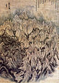 ...Then there was Li Cheng, who when he depicted pavilions and lodges amidst mountains, storeyed buildings, pagodas and the like, always used to paint the eaves as seen from below. His idea was that 'one should look upwards from underneath, just as a man standing on level ground and looking up at the eaves of a pagoda can see its rafters and its cantilever eave rafters'. This is all wrong. In general the proper way of painting a landscape is to see the small from the viewpoint of the large...just as one looks at artificial mountains in gardens (as one walks about). If one applies (Li's method) to the painting of real mountains, looking up at them from below, one can only see one profile at a time, and not the wealth of their multitudinous slopes and profiles, to say nothing of all that is going on in the valleys and canyons, and in the lanes and courtyards with their dwellings and houses. If we stand to the east of a mountain its western parts would be on the vanishing boundary of far-off distance, and vice-versa. Surely this could not be called a successful painting? Mr. Li did not understand the principle of 'seeing the small from the viewpoint of the large'. He was certainly marvelous at diminishing accurately heights and distances, but should one attach such importance to the angles and corners of buildings?