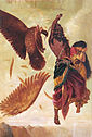 Rajput painting, a style of Indian painting, evolved and flourished, during the 18th century, in the royal courts of Rajputana, India. Each Rajput kingdom evolved a distinct style, but with certain common features. Rajput paintings depict a number of themes, events of epics like the Ramayana and the Mahabharata, Krishna's life, beautiful landscapes, and humans. Miniatures were the preferred medium of Rajput painting, but several manuscripts also contain Rajput paintings, and paintings were even done on the walls of palaces, inner chambers of the forts, havelies, particularly, the havelis of Shekhawait.