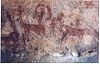 The oldest known paintings are at the Grotte Chauvet in France, claimed by some historians to be about 32,000 years old. They are engraved and painted using red ochre and black pigment and show horses, rhinoceros, lions, buffalo, mammoth or humans often hunting. There are examples of cave paintings all over the world—in France, India, Spain, Portugal, China, Australia etc. Various conjectures have been made as to the meaning these paintings had to the people that made them. Prehistoric men may have painted animals to "catch" their soul or spirit in order to hunt them more easily or the paintings may represent an animistic vision and homage to surrounding nature, or they may be the result of a basic need of expression that is innate to human beings, or they could have been for the transmission of practical information.