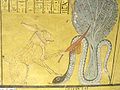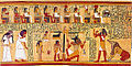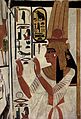 Ancient Egypt, a civilization with very strong traditions of architecture and sculpture (both originally painted in bright colours) also had many mural paintings in temples and buildings, and painted illustrations on papyrus manuscripts. Egyptian wall painting and decorative painting is often graphic, sometimes more symbolic than realistic. Egyptian painting depicts figures in bold outline and flat silhouette, in which symmetry is a constant characteristic. Egyptian painting has close connection with its written language - called Egyptian hieroglyphs. Painted symbols are found amongst the first forms of written language. The Egyptians also painted on linen, remnants of which survive today. Ancient Egyptian paintings survived due to the extremely dry climate. The ancient Egyptians created paintings to make the afterlife of the deceased a pleasant place. The themes included journey through the afterworld or their protective deities introducing the deceased to the gods of the underworld. Some examples of such paintings are paintings of the gods and goddesses Ra, Horus, Anubis, Nut, Osiris and Isis. Some tomb paintings show activities that the deceased were involved in when they were alive and wished to carry on doing for eternity. In the New Kingdom and later, the Book of the Dead was buried with the entombed person. It was considered important for an introduction to the afterlife.