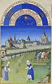 Churches were built with more and more windows and the use of colorful stained glass become a staple in decoration. One of the most famous examples of this is found in the cathedral of Notre Dame de Paris. By the 14th century Western societies were both richer and more cultivated and painters found new patrons in the nobility and even the bourgeoisie. Illuminated manuscripts took on a new character and slim, fashionably dressed court women were shown in their landscapes. This style soon became known as International style and tempera panel paintings and altarpieces gained importance.
