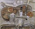 In the late 1960s the abstract expressionist painter Philip Guston helped to lead a transition from abstract expressionism to Neo-expressionism in painting, abandoning the so-called "pure abstraction" of abstract expressionism in favour of more cartoonish renderings of various personal symbols and objects. These works were inspirational to a new generation of painters interested in a revival of expressive imagery. His painting Painting, Smoking, Eating 1973, seen above in the gallery is an example of Guston's final and conclusive return to representation.