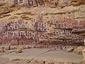 If there is meaning to the paintings, it remains unknown. The caves were not in an inhabited area, so they may have been used for seasonal rituals. The animals are accompanied by signs which suggest a possible magic use. Arrow-like symbols in Lascaux are sometimes interpreted as calendar or almanac use. But the evidence remains inconclusive. The most important work of the Mesolithic era were the marching warriors, a rock painting at Cingle de la Mola, Castellón, Spain dated to about 7000 to 4000 BC. The technique used was probably spitting or blowing the pigments onto the rock. The paintings are quite naturalistic, though stylized. The figures are not three-dimensional, even though they overlap