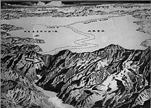 Sketch of proposed Boulder Canyon dam site and reservoir, circa 1921